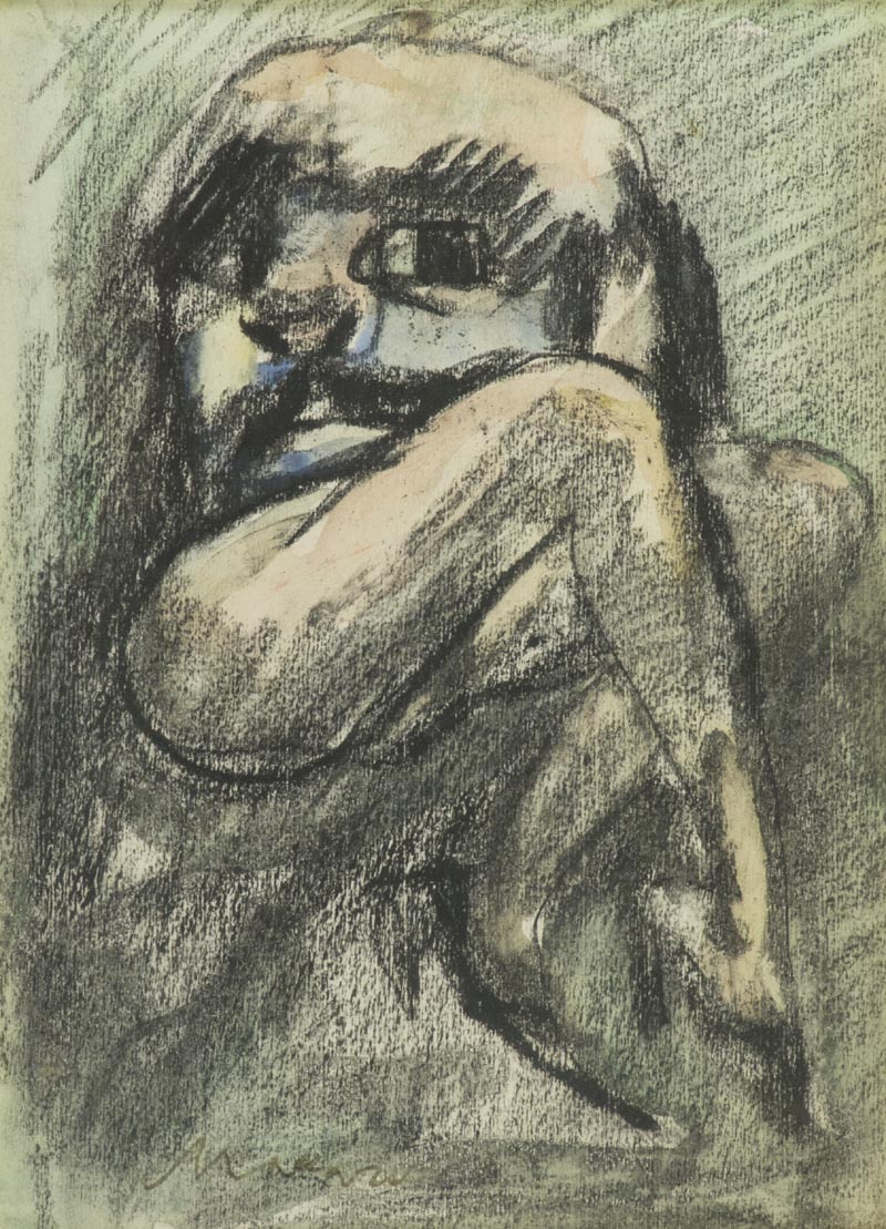 Mino Maccari, Siena 1898 - Roma 1989, Scherzo , Tecnica mista su carta intelata, cm. 33x24, Firmato in basso a sinistra; Sul verso: firma; Timbro Fratelli Orler, Favaro Veneto; Etichetta con descrizione. , ,