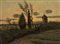 Gino Romiti, Livorno 1881 - 1967, Paesaggio con figure 1963, Olio su faesite, cm. 30x40, Firma e data in basso a sinistra; Sul verso: firma e dedica a persona., ,