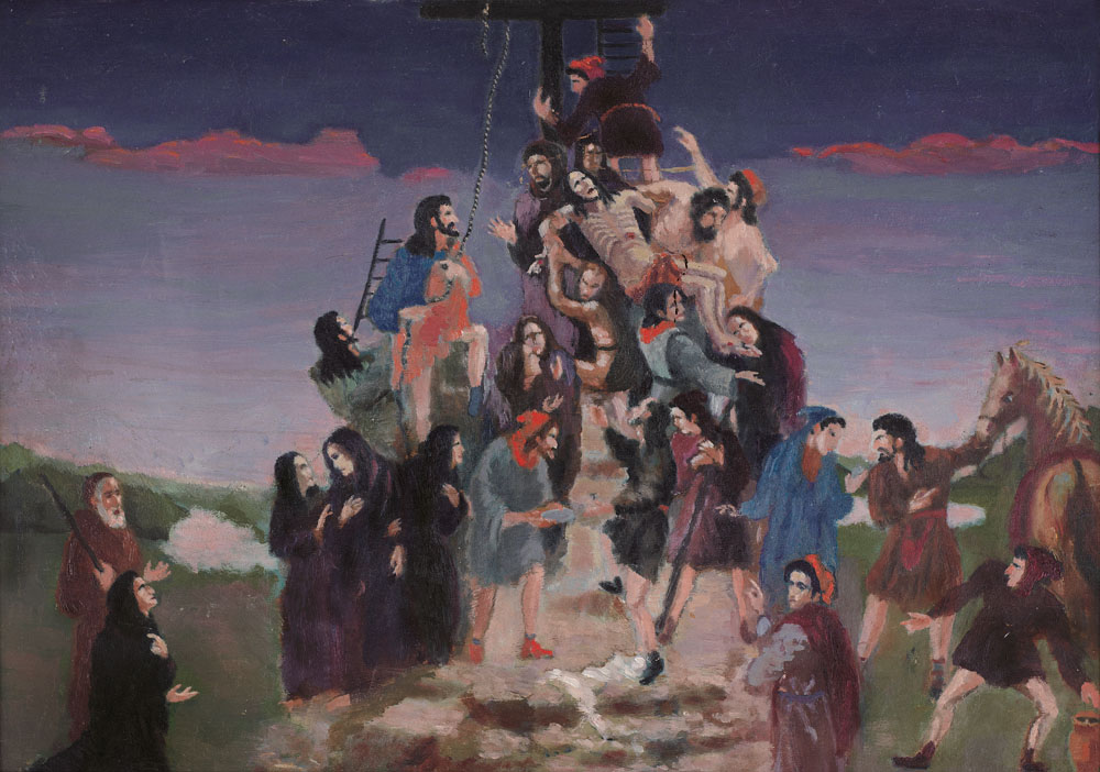 ALDO CARPI Milano 06/10/1886 - Milano 27/10/1973  Deposizione olio su tavola cm. 50x70, firma al retro, timbro e firma per Autenticità e Provenienza della Farsetti Arte di Prato su foto con certificato allegato, pubblicato sul "Catalogo dell'Arte Moderna" n° 44, Editoriale Giorgio Mondadori (MI), 2008, pagina 183.