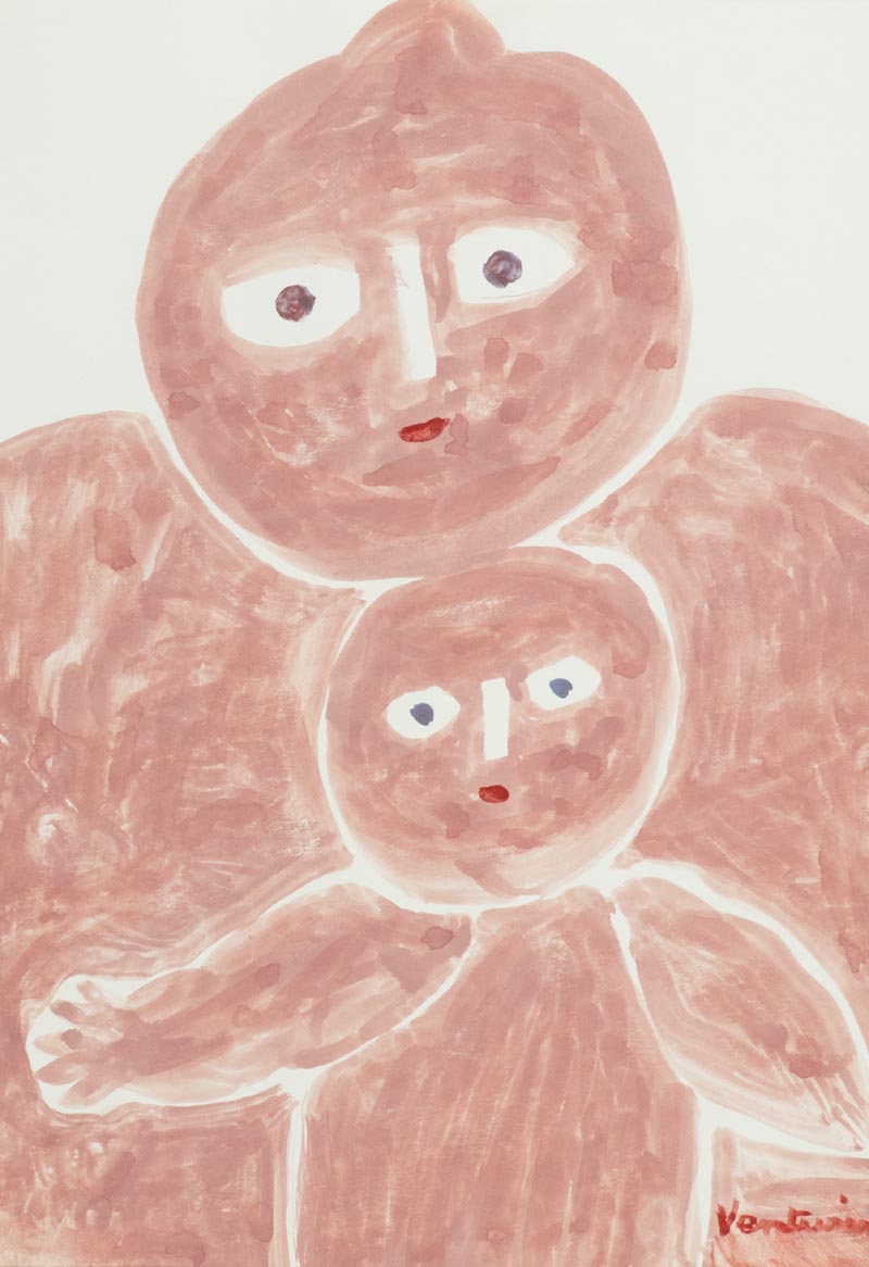 Venturino Venturi, Loro Ciuffenna (Ar) 1918 - 2002, Maternità , Tempera su carta,cm. 35x24,5, Firmato in basso a destra; Sul verso: timbro "Archivio Venturino Venturi con n° 254., Bibliografia: Lucia Fiaschi "Venturino Venturi, Catalogo Generale Volume I",Carlo Cambi editore, pag. 130 in. 620., Autentica della Dott.ssa Lucia Fiaschi su foto.