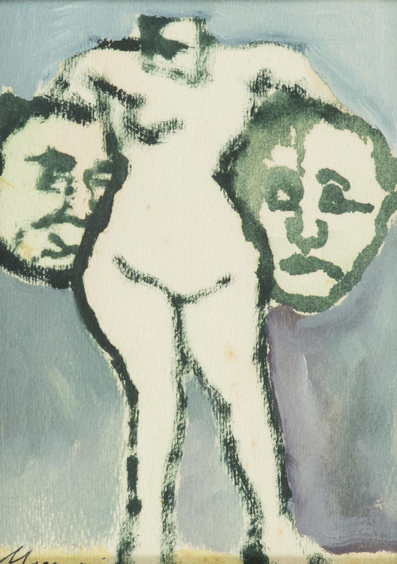 Mino Maccari, Siena 1898 - Roma 1989, Senza titolo , Tecnica mista su cartone, cm. 18x13, Firmato in basso a sinistra; Sul verso: dedica a persona datata 1974., ,