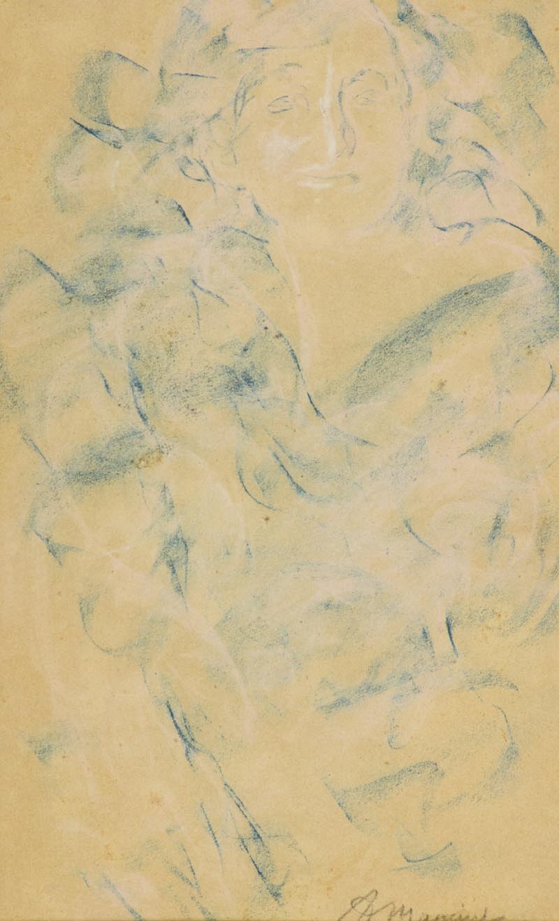 Antonio Mancini, Roma 1852 - Roma 1930, Volto di donna , Pastello su carta, cm. 32x19,5, Firmato in alto a destra; Sul verso: Etichetta Sotheby's, Milano., ,