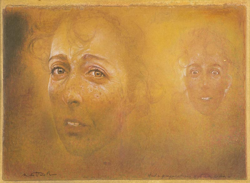 Andrea Martinelli, Prato 1965 - , Studio preparatorio per la Betta 2002, Tecnica mista su carta antica incollata su cartone, cm. 23x31, Firmato in basso a sinistra, titolo in basso a destra; Sul verso: firma, data, titolo e descrizione., ,