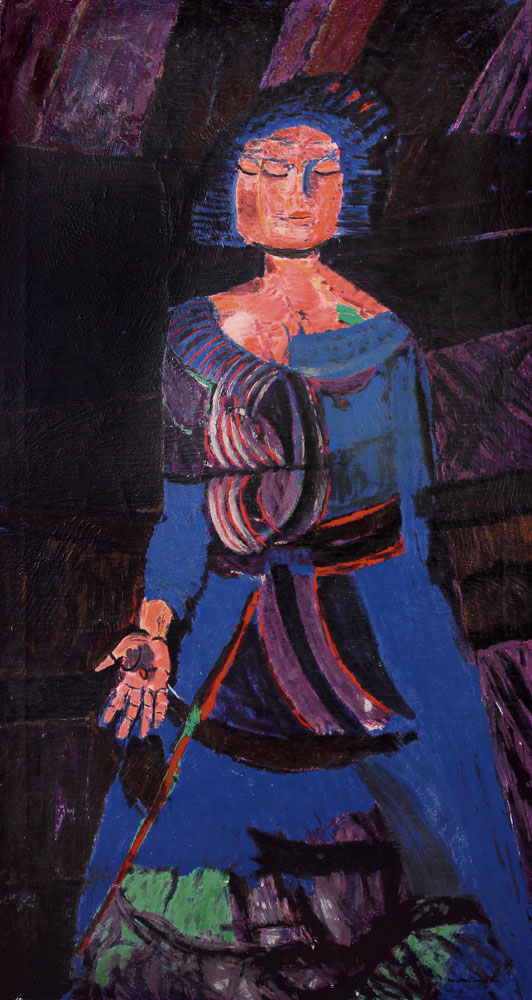 BRUNO CASSINARI Piacenza 28/10/1912 - Milano 26/03/1992 Maternità serigrafia polimaterica a 60 colori su tela cm. 158x79, esemplare 15/150, firma in basso a destra, timbro dello Studio Cassinari al retro.