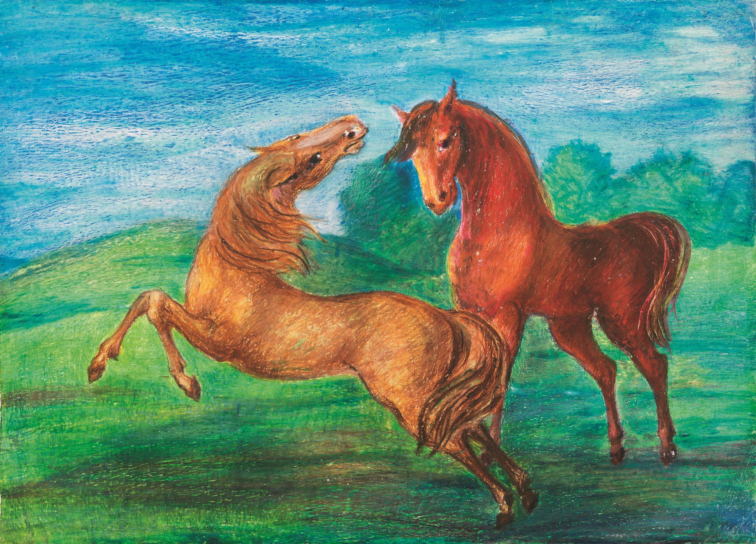 Aligi Sassu (Milano 1912 - 2000) CAVALLI tecnica mista su...