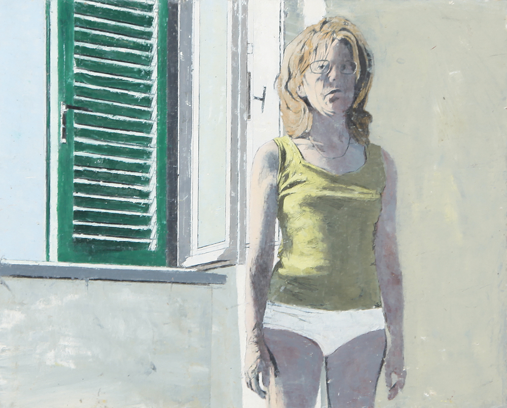 GIORGIO ORTONA 1960 Interno con moglie, 2009 olio su tavola cm. 32x40, firma dell'artista e timbro della Italian Factory al retro, dichiarazione d'autenticità dell'artista e timbro della Italian Factory su foto, pubblicato sul catalogo Giorgio Ortona, il verme nella mela, Maretti Editore, 54 Esposizione Internazionale d'Arte La Biennale di Venezia, Padiglione della Repubblica di Cuba, Isola di San Servolo e Caserma Cornoldi, Riva degli Schiavoni 4 giugno, 27 novembre 2011, pagina 41.