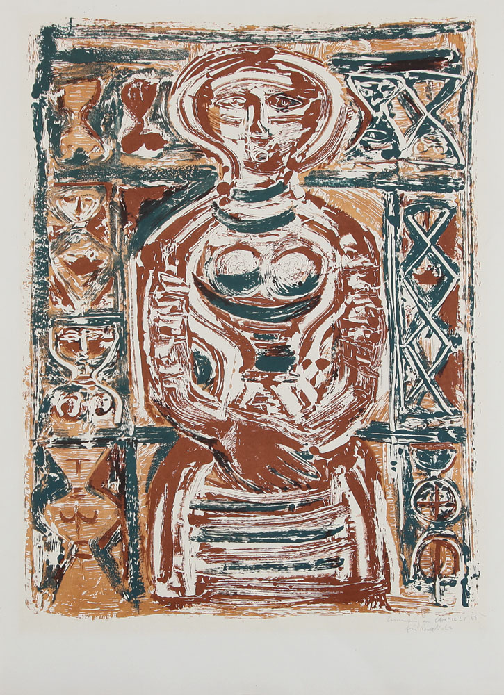 MASSIMO CAMPIGLI Berlino 04/07/1895 - St. Tropez (Francia) 31/05/1971 Donna alla finestra, 1959 fotoincisione su carta cm. 58,3x41,5 (lastra 50x37), esemplare non numerato su una tiratura di 90, firma, anno e dedica dell'artista in basso a destra, pubblicata su "Campigli, Catalogo Ragionato dell'Opera Grafica, Litografie e Incisioni", Edizioni Graphis Arte, a cura di Francesco Meloni e Luigi Tavola, pagina 12.