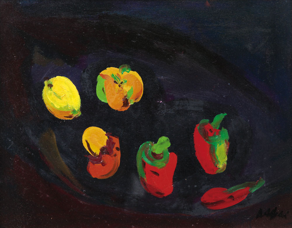 ATTILIO ALFIERI Loreto (An) 15/02/1904 - Milano 20/04/1992 Natura morta olio su tela cm. 40x50, firma in basso a destra autentica dell'artista al retro, opera registrata presso l'Archivio Alfieri come da dichiarazione del figlio su foto.