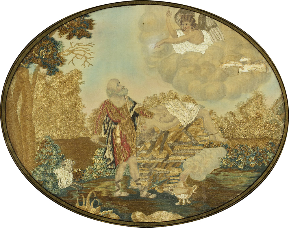 Artigiano centro italiano della fine dell’Ottocento Sacrificio di Isacco Tecnica mista su carta, cm. 32,5 x 41,5 Lacuna dovuta ad umidità in alto a destra