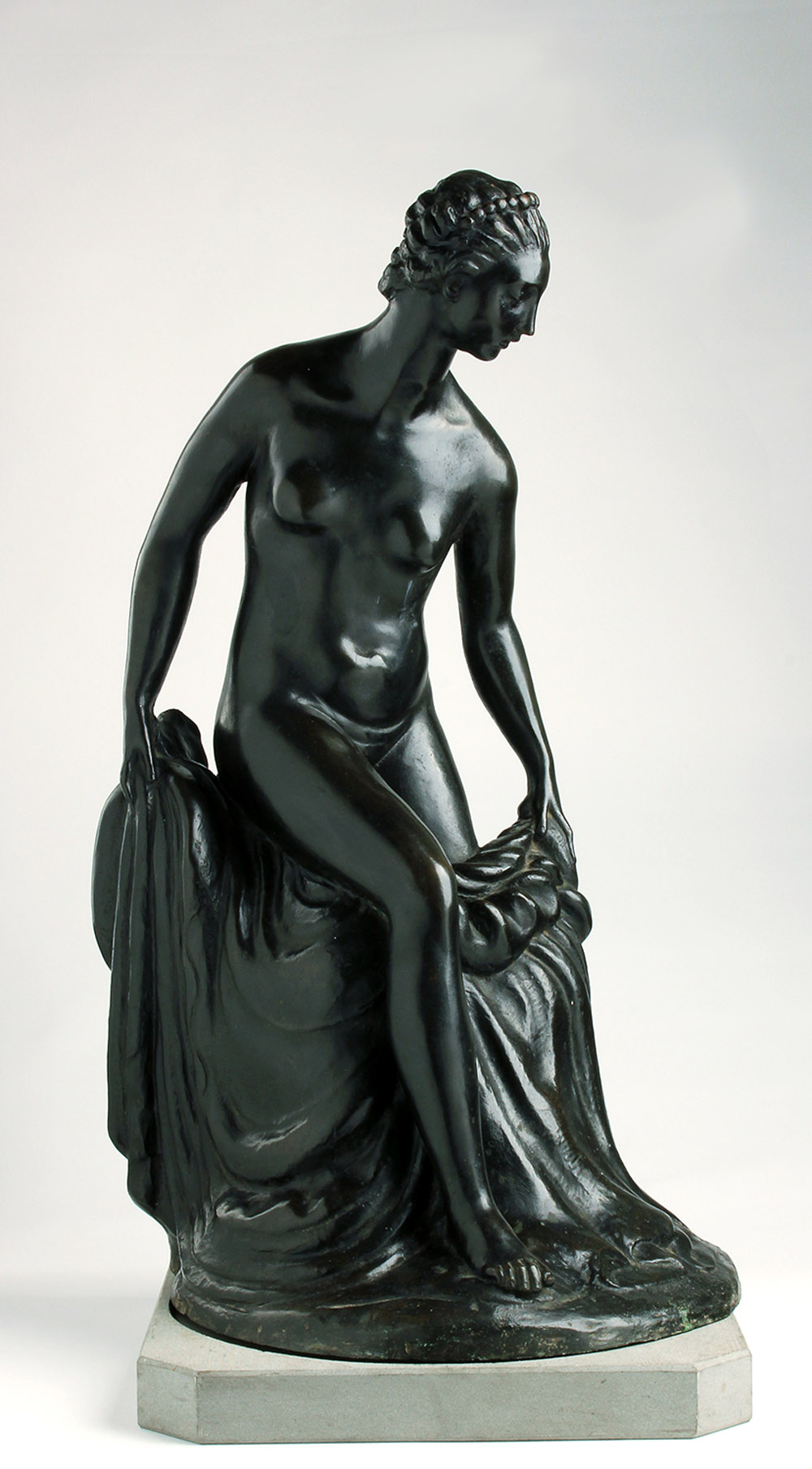 ALFREDO BIAGINI Roma 1886 - Roma 1952 La bagnante, Anni ‘30 circa Scultura in bronzo h. cm. 68,5 circa Firma in basso al retro: A BIAGINI L’opera era situata in una nicchia del cinema Quirinetta di Roma realizzato nel 1927 da Marcello Piacentini e decorato con sculture bronzee e altorilievi di Alfredo Biagini