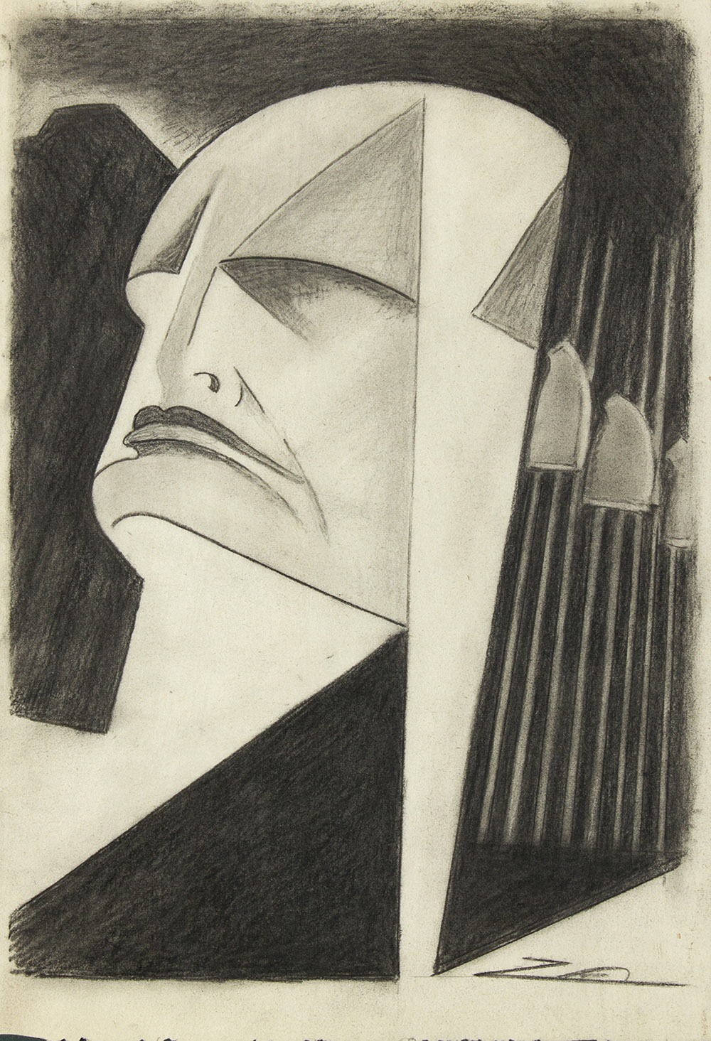 NINO ZA Milano 1906 - Roma 1996 Ritratto di Mussolini Carboncino su carta cm 32 x 21,5 Firma in basso a destra: ZA