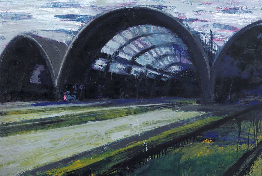 MASSIMILIANO ALIOTO Brindisi 06/05/1972 Direzioni, 2002 olio su tela cm. 100x150, firma e anno in basso a sinistra, firma, titolo e anno al retro, pubblicato sul catalogo della mostra "Alioto altre direzioni" a cura della Casa d'Arte San Lorenzo, pagina 48 e 49, l'opera è stata esposta durante la mostra itinerante nelle stazioni ferroviarie di Firenze, Venezia, Roma, Torino e Milano (l'opera raffigura la stazione Centrale di Milano) con intervalli di tempo di circa 2 settimane.