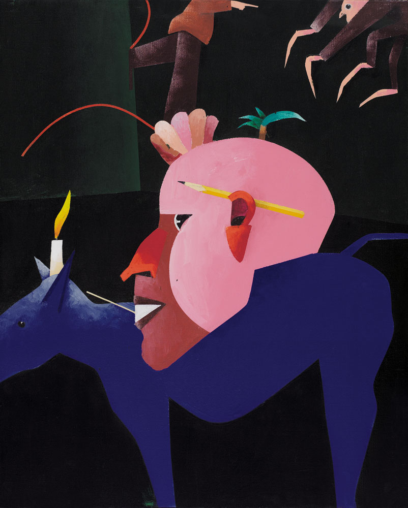 EMILIO TADINI Milano 1927 - Milano 24/09/2002 Fiaba, 2001 acrilico su tela cm. 81x65, firma, titolo, Archivio Tadini numero TA 088/01, timbri ed etichetta dello Studio Guastalla (MI) al retro.