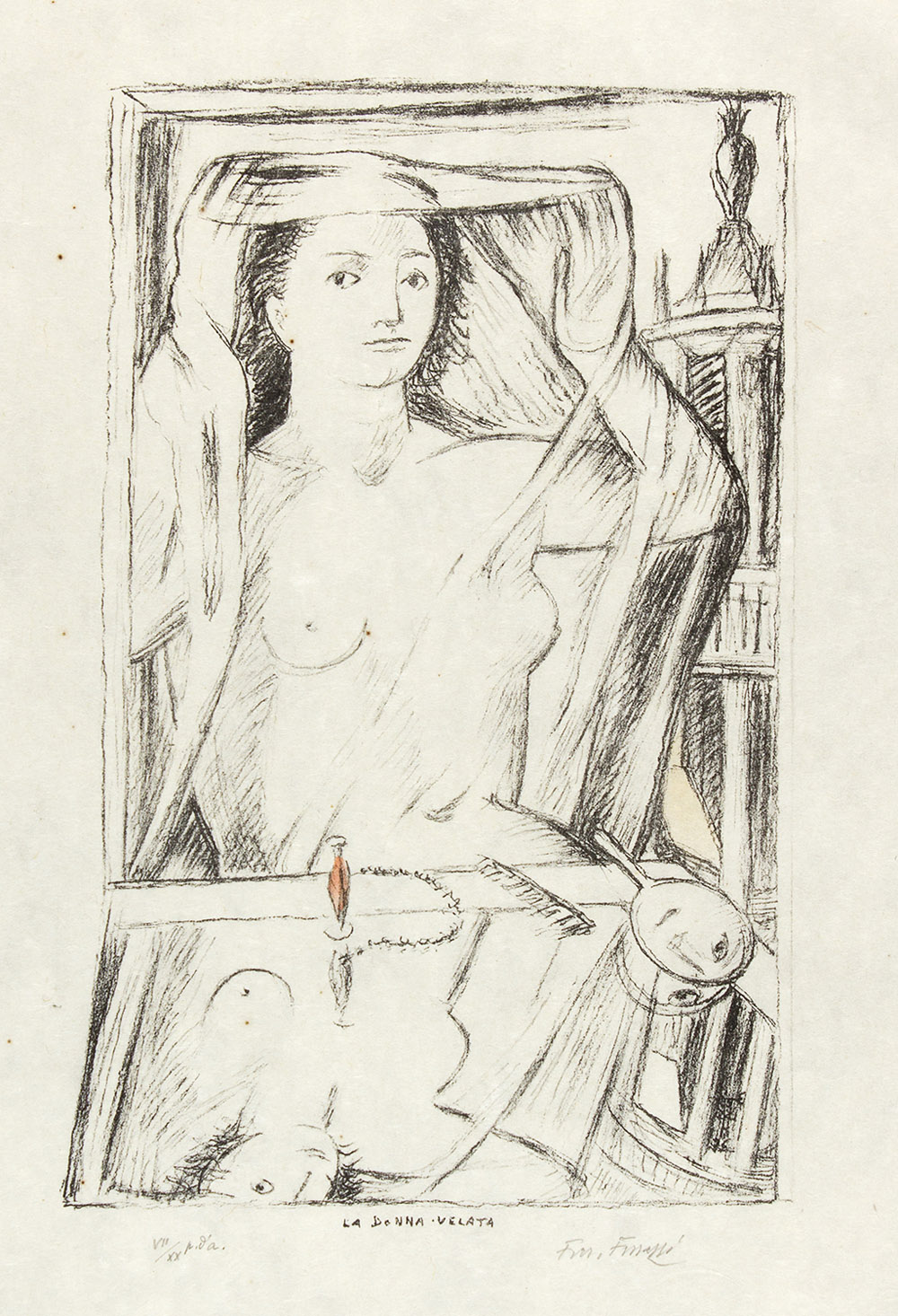 FERRUCCIO FERRAZZI Roma 1891 - 1978 La donna velata Litografia su carta Japan...