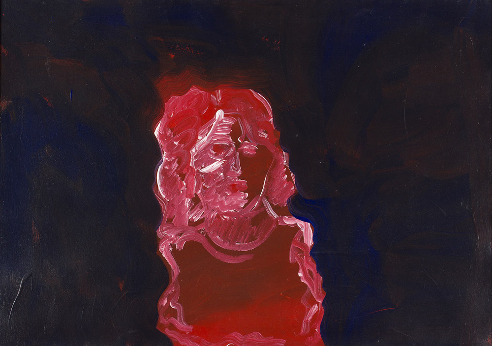 TANO FESTA Roma 1938 - 1988 Volto di donna, 1984 Acrilico su tela emulsionata cm 70 x 100 Firma e data al retro: festa 1984 Dedica al retro in inglese