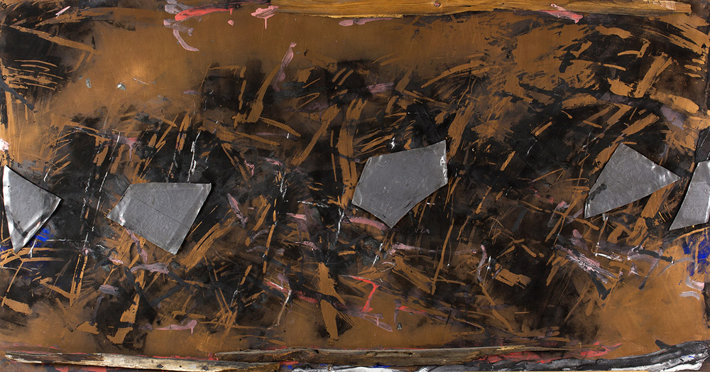 MARCO GASTINI Torino 1938 Astratto Tecnica mista con piombo e legno su rame cm 100 x 193