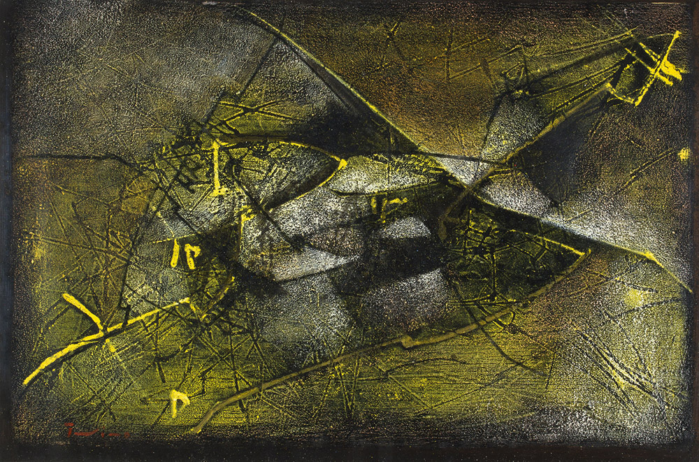 SALVATORE PROVINO Bagheria (Palermo) 1943 Composizione astratta tecnica mista su carta cm 39 x 58,5 Firma in basso a sinistra: Provino