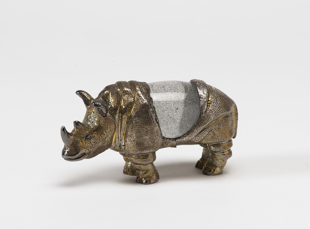 Gabriella Crespi - "Rinoceronte" scultura in vetro soffiato e bronzo...
