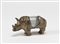 Gabriella Crespi - "Rinoceronte" scultura in vetro soffiato e bronzo argentato. 1970 circa. Firmata sotto la pancia (cm 15x9x7)