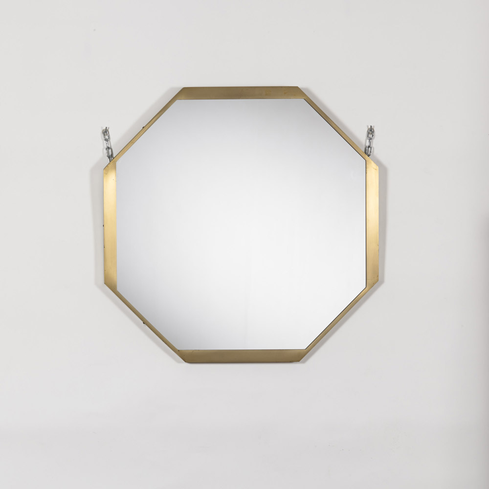 Specchio ottagonale con cornice in ottone. Italia anni 50. (cm 99x99)