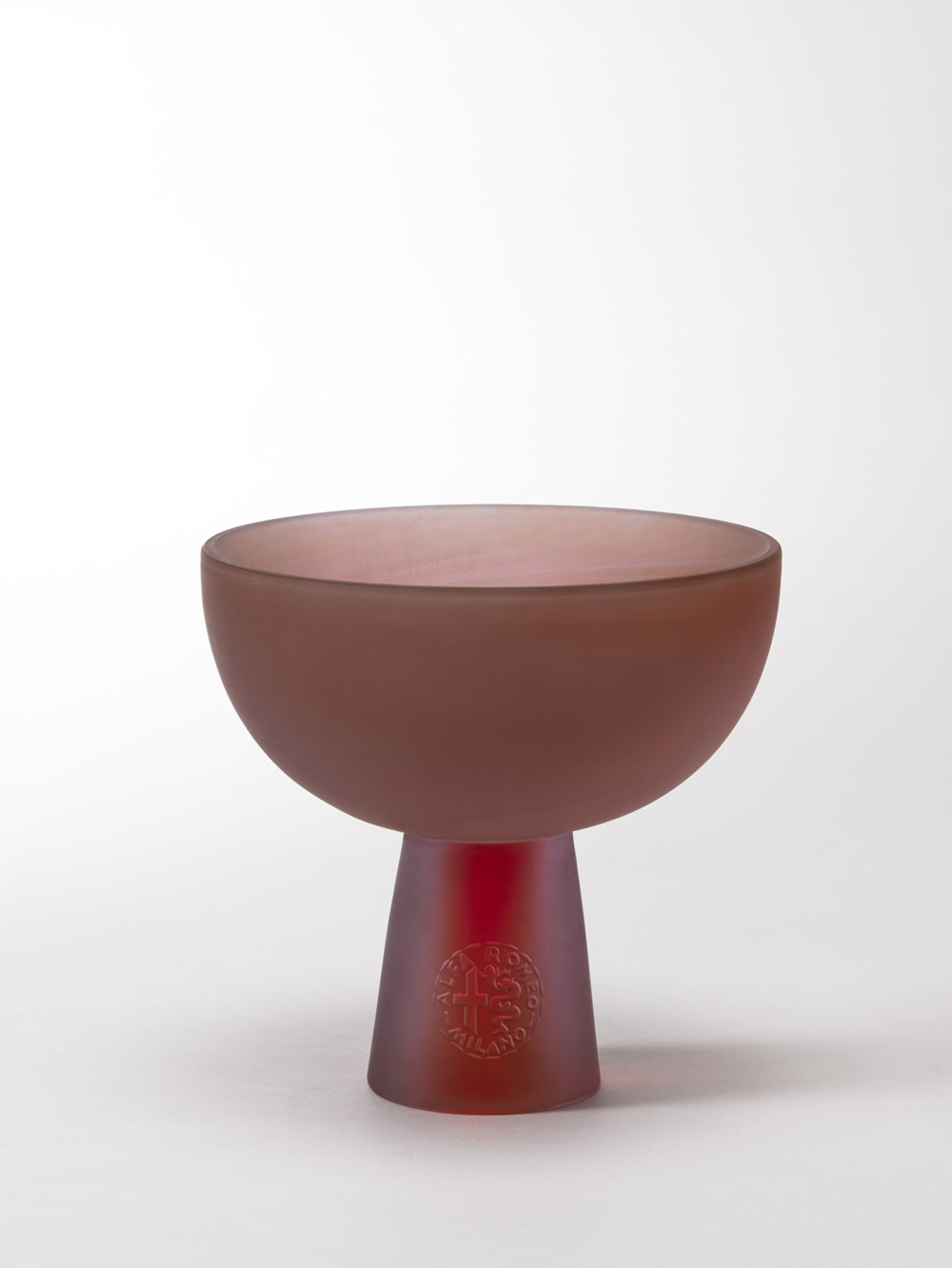 Flavio Poli (1900 - 1984) - Coppa per l'Alfa Romeo, disegno n. 13003, in vetro satinato rosso e ametista. Seguso, Murano 1961 ca. (h cm 17) Bibliografia: M. Heiremans, Seguso vetri d'Arte. Glass object from Murano (1932-1973), Arnoldsche, Stuttgart 2014, p. 287; F. Deboni, Murabno '900, Bocca, Milano 1996, p. 229, fig. 145