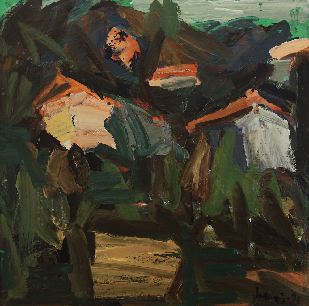 PIERO MAGGIONI Monticello Brianza (Co) 1931 - Vigano' (Co) 1995 Brianza, 1984 (ripreso nel 1994) olio su tavola cm. 70x70, firma e anno (94) in basso a destra, firma, etichette e timbri dell'esposizione tenutasi presso l'Associazione Amici del Castello Malgrà, Comune di Rivarolo dal 30 aprile al 4 giugno 2000 e presso Tour Fromage Aosta dal 19 aprile al 7 luglio 2002 al retro, opera registrata al numero MG 269 presso l'Archivio Piero Maggioni come da dichiarazione a cura di Antonio Maggioni su foto, pubblicato sul "Catalogo generale delle opere di Piero Maggioni", primo volume (1950-1995), Editoriale Giorgio Mondadori, pagina 130.