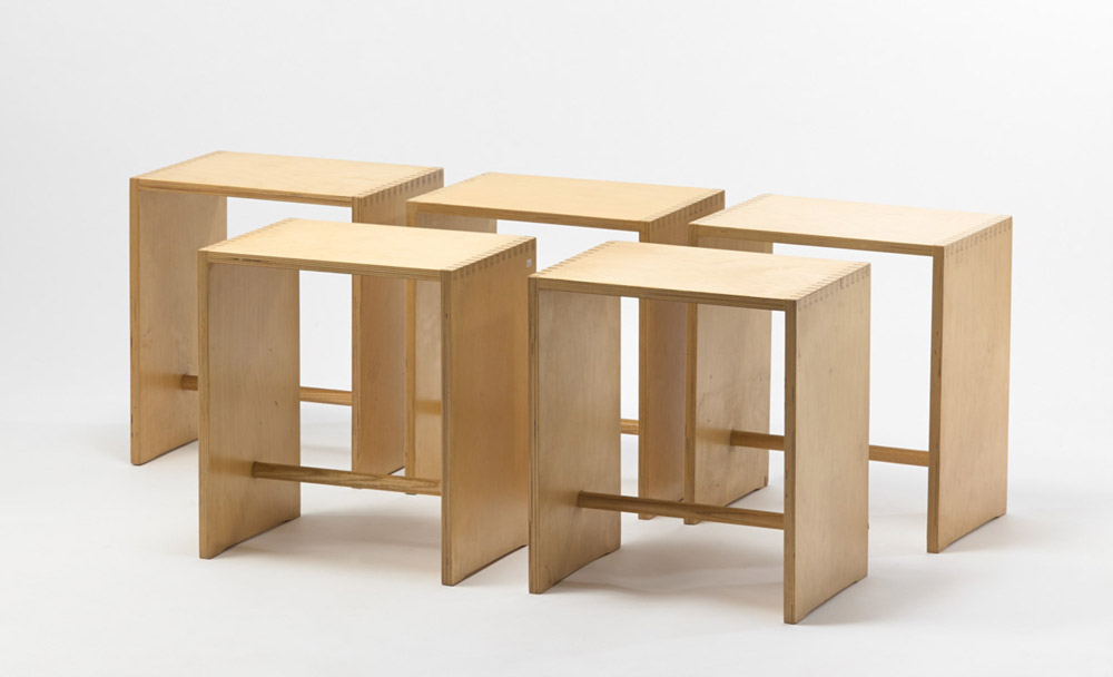 Max Bill (Winterthur 1908 - Berlino 1994) - Gruppo di cinque sgabelli in...