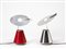 Kurt Ziehmer - Due lampade da tavolo modello "Puck". Produzione Vereinigte Werkstätten,Germania 1980 ca. Fusione di alluminio lucidato e laccato rosso, metallo cromato, plexiglass. (h cm 35 ca) (lievi difetti)