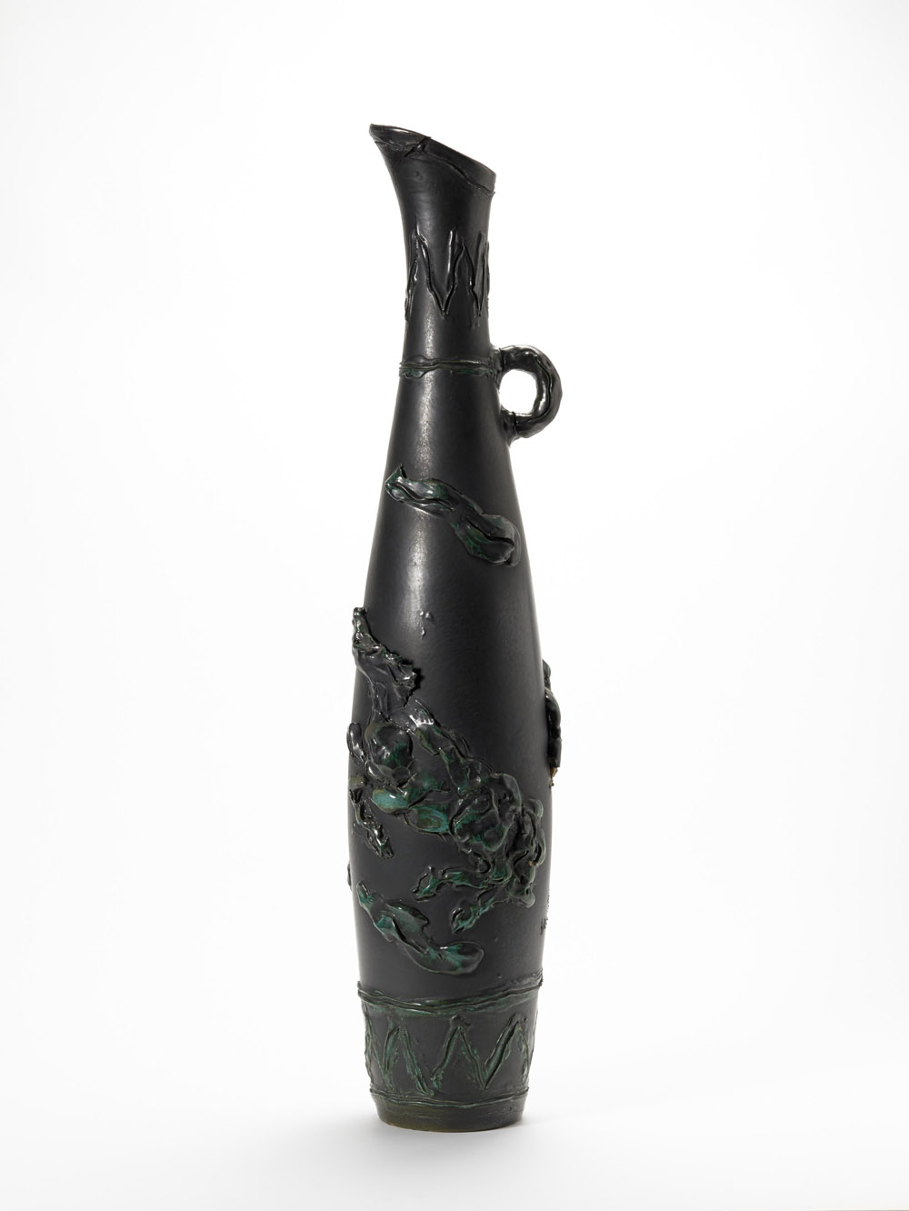 Umberto Ghersi (1913 - 1993) - Grande vaso in ceramica smaltata in grigio e nero con con decori ad alto rilievo raffiguranti cavalli. CEAS Albisola, anni 50 (h cm 104) (difetti e restauri)