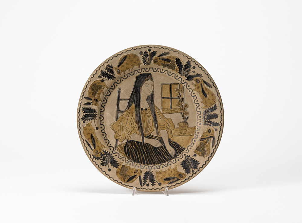 Simone Lai - Piatto in terracotta a stampo dipinta a freddo, anni 30, Firmato...