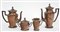 Servizio in rame composto da caffettiera, teiera, zuccheriera e lattiera,...