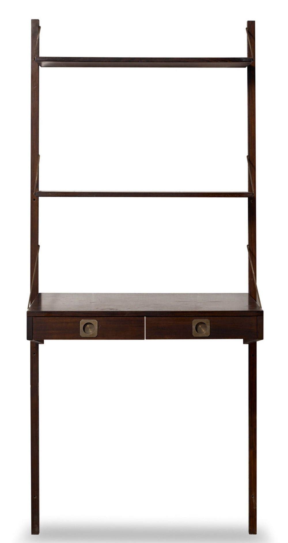 Afra e Tobia Scarpa - Libreria/scrivania pensile inpiallaciata in legno di palissandro indiano, due cassetti e due ripiani. Montanti in legno e ottone. Produzione Stildomus anni 50/60 (cm 82x200x52) (lievi difetti)