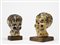 Lotto di due teste di fanciullo in ceramica invetriata montate su base in...