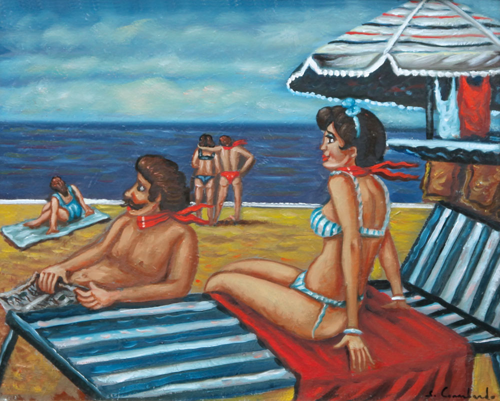 SALVO LOMBARDO Favara (Ag) 1948 Al mare olio su tela cm. 40x50, firma in...