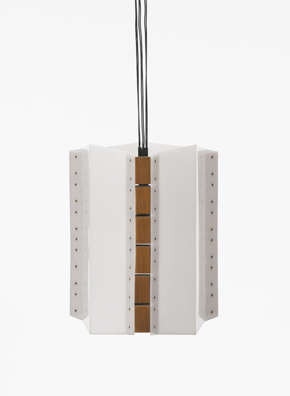 Lot 647 | Lampada a sospensione in legno e plastica. Produzione Alfaplast, Italia anni...