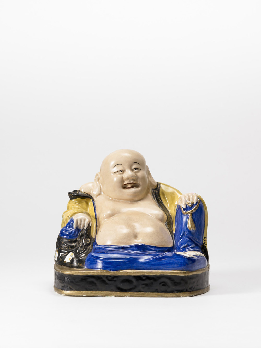 Gio Ponti (Milano 1891 - 1979) - Terracotta modellata acolaggio e dipinta in policromia raffigurante "Budda". Marchiata Richard Ginori S. Cristoforo, Milano made in Italy (h cm 18,5) Bibliografia: Ceramiche moderne d'arte Richard Ginori, Alfieri & Lacroix, Milano. modello 5762 p. 115