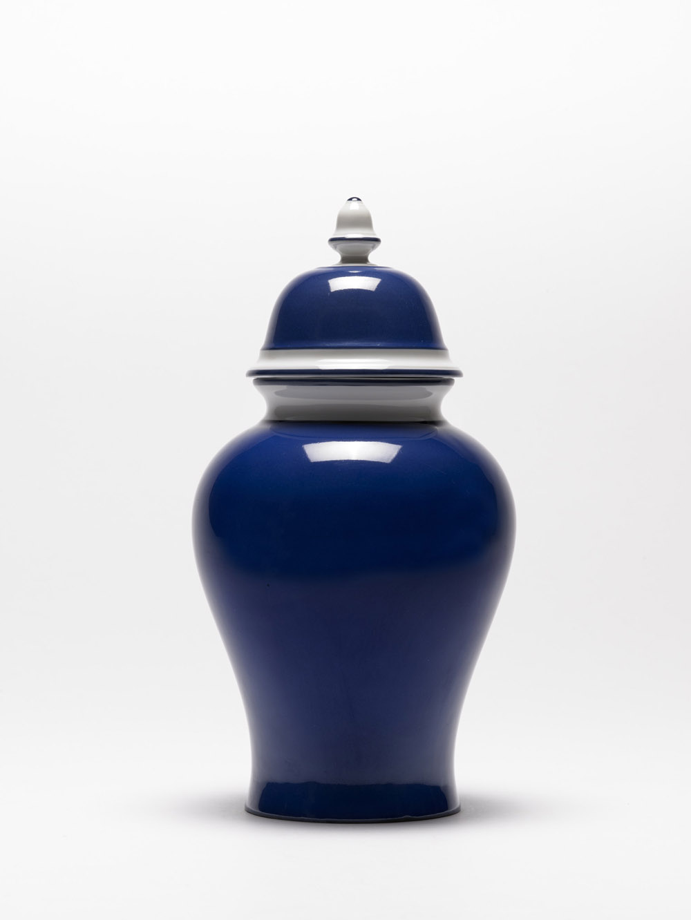 Giovanni Gariboldi (1908 - 1971) - (attribuito) Potiche con coperchio in porcellana smaltata in blu. Manifattura Richard Ginori, Pittoria di Doccia, anni 30/40, etichetta sotto la base con n. 2241.