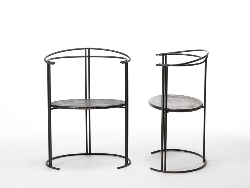 Lot 663 | Coppia di poltroncine in tondino metallico verniciato nero. Produzione...