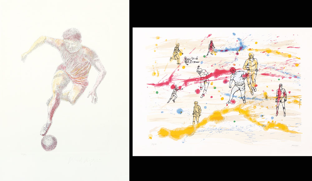 AUTORI VARI PERICLE FAZZINI Calciatore acquaforte acquatinta su carta cm. 70x50, esemplare 78/130, firma in basso a destra. AGENORE FABBRI Calciatori litografia su carta cm. 50x70, esemplare 23/100, firma in basso a destra.