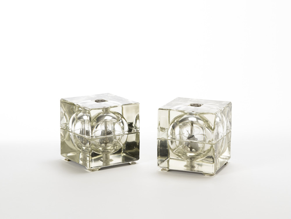 Alessandro Mendini (Milano 1931) - Coppia di lampade da parete modello "cubosfera", produzione Fidenza Vetraria, 1968 (cm 16x16x16)