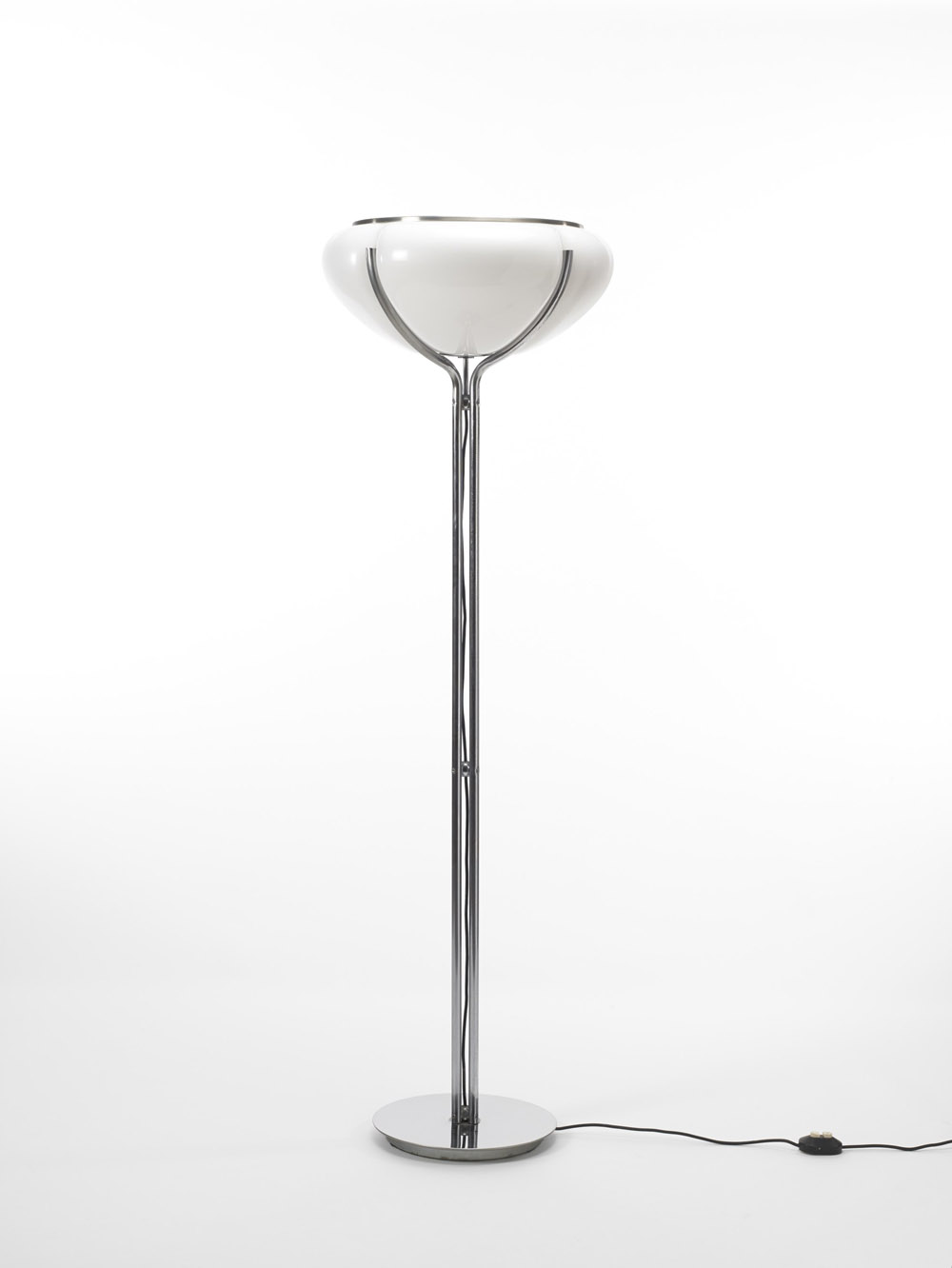 Gae Aulenti (1927 - 2012) - Lampada da terra modello "Quadrifoglio". Produzione Guzzini, 1974. Metallo cromato e Perspex opalino (h cm 165) (segni d’uso)