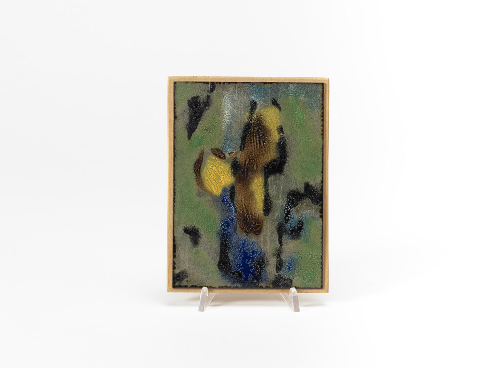 Paolo De Poli (Padova 1905 - 1966) - Pannello astratto in rame smaltato, iscritto al verso "Natale 1963 Paolo De Poli" (cm 14x33,5) montato su compensato (cm 16,50x 12)
