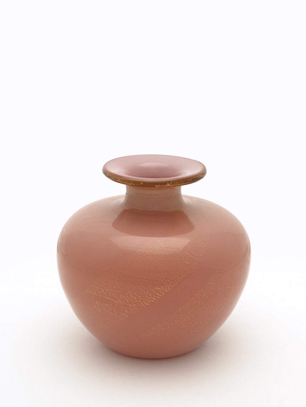 Venini Piccolo vaso bulbiforme con collo pronunciato in vetro "laguna" a più...