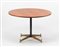 Tavolo tondo con piano in legno, stelo centrale in ferro verniciato nero, basamento in ottone lucidato a quattro raggi con piedini regolabili. Disegno simile al tavolo "T1" per Azucena. Produzione italiana anni 50/60. (d cm 120, h cm 76) (lievi difetti) Bibliografia per il tavolo T1: G. Gramigna, Repertorio del design italiano 1950-2000 per l'arredamento domestico, Allemandi, Torino 2003, p. 26.