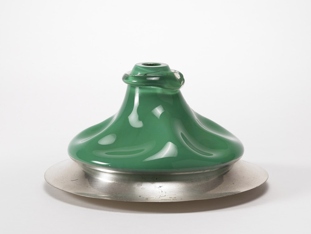 Lino Sabattini (1925) - "Fal-dà" Scultura in vetro trasparente verniciato in verde sulla superficie interna. Base in metallo argentato, 1972. Firma e data incussi sulla base. (d cm 35, h cm 20) Provenienza: Collezione Privata Lino Sabattini