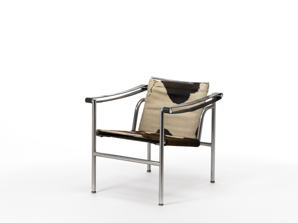 Le Corbusier (Francia 1887 - 1965) - Poltroncina modello "LC1". Produzione Cassina, Meda, anni 70. struttura in tubolare metallico cromato, schienale e seduta rivestiti in cavallino. Firmata a incussione e recante etichetta sulla struttura metallica. (difetti)