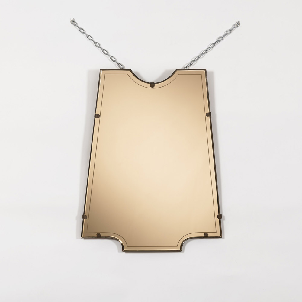 Lot 879 | Specchio in vetro molato rosa ambrato. Esecuzione italiana anni 40 (cm 75x55)...