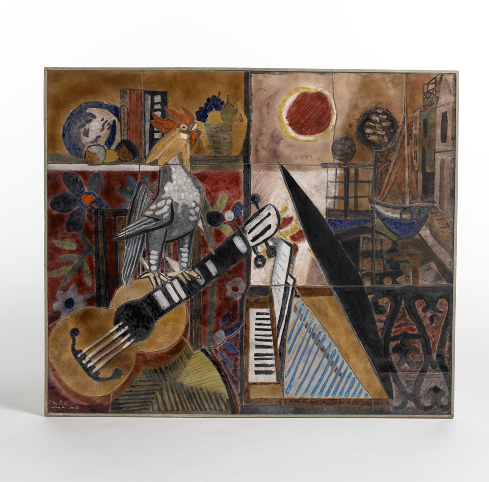 Paolo De Poli (Padova 1905 - 1966) - "La musica" grande pannello decorativo in metallo smaltato su cartone di Bruno Saetti. Esposto alla XXVII Biennale Internazionale d'Arte di Venezia, 1954. Firmata in basso a sinistra "P. de Poli cartone di Saetti". Reca al verso etichette cartacee della Biennale e dell'autore. Bibliografia: XXVII Biennale di Venezia, Catalogo ufficiale, Ombroso Editore, Venezia 1954, p. 427, n 116; AA.VV., L'Arte dello smalto Paolo De Poli, catalogo della mostra (Padova 1984), pp. 43,44
