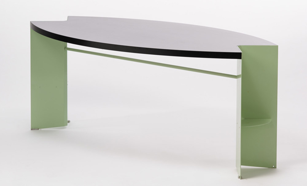 Alessandro Mendini (Milano 1931) - Tavolo "Prima duna", produzione Tribu, anni 80.Metallo laccato verde acqua e piano rivestito in melaminico nero. (cm 180x74x96) (lievi difetti)