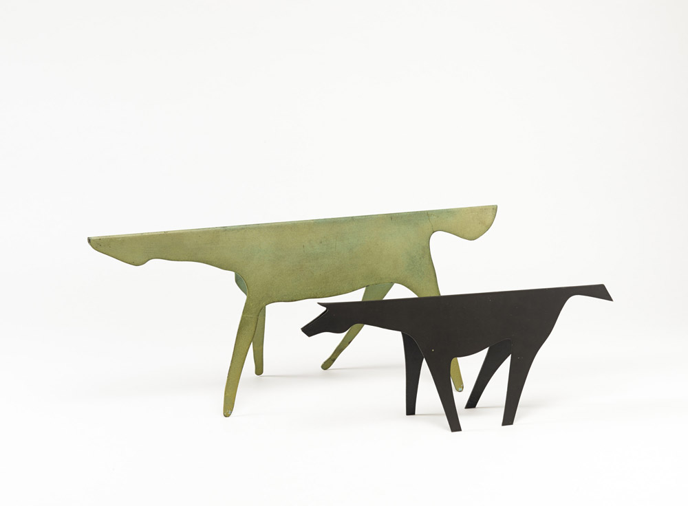 Lino Sabattini (1925) - Due cavallini in metallo tinto nero e verde rame, tratti dal disegno originale di Gio Ponti. Esemplari speciali eseguiti da Lino Sabattini (cm 60 e 45) Provenienza: Collezione Privata Lino Sabattini